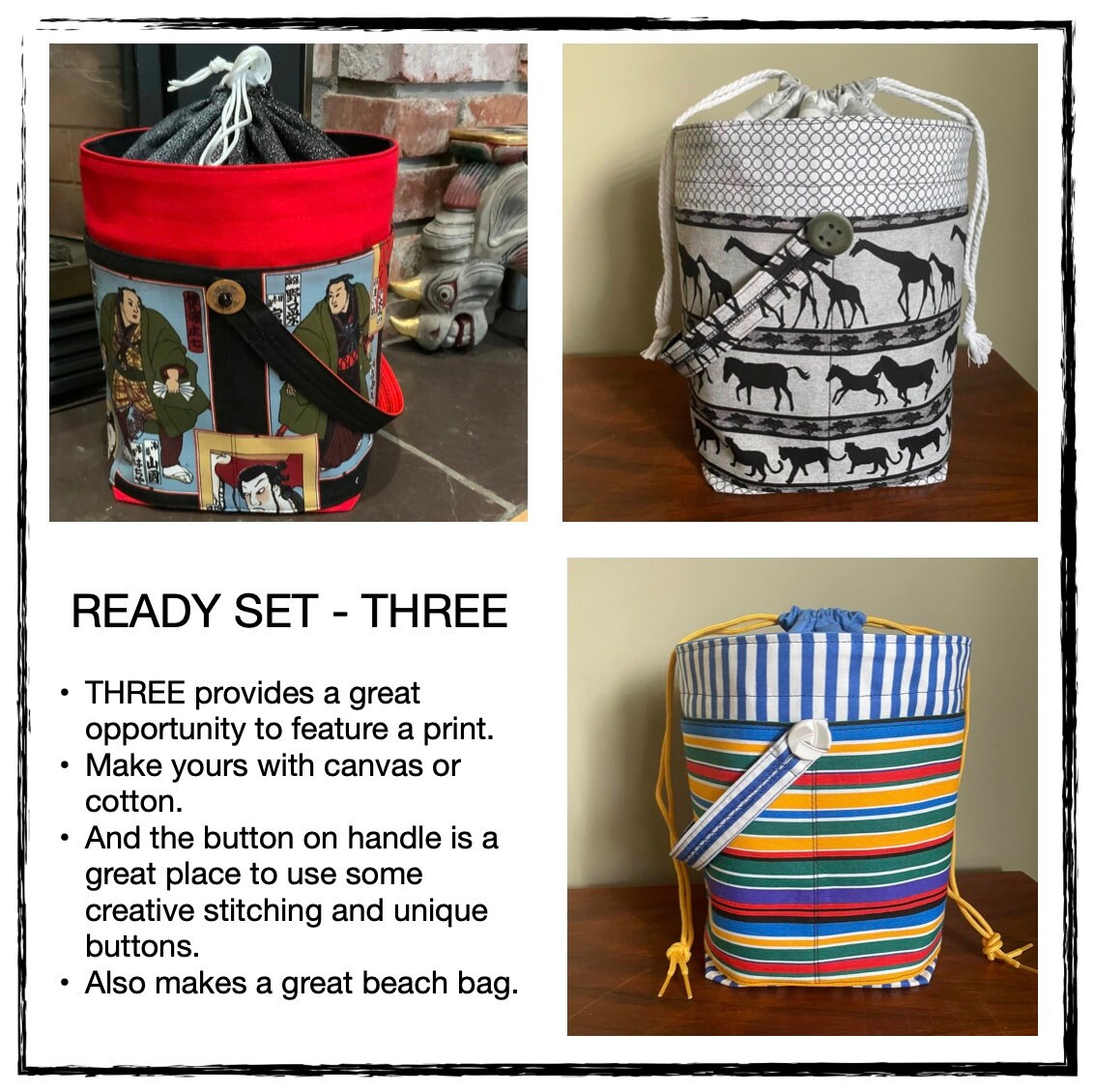 Ready Set Pdf Pattern For Three Sized Project Bucket Bag Etsy Australia